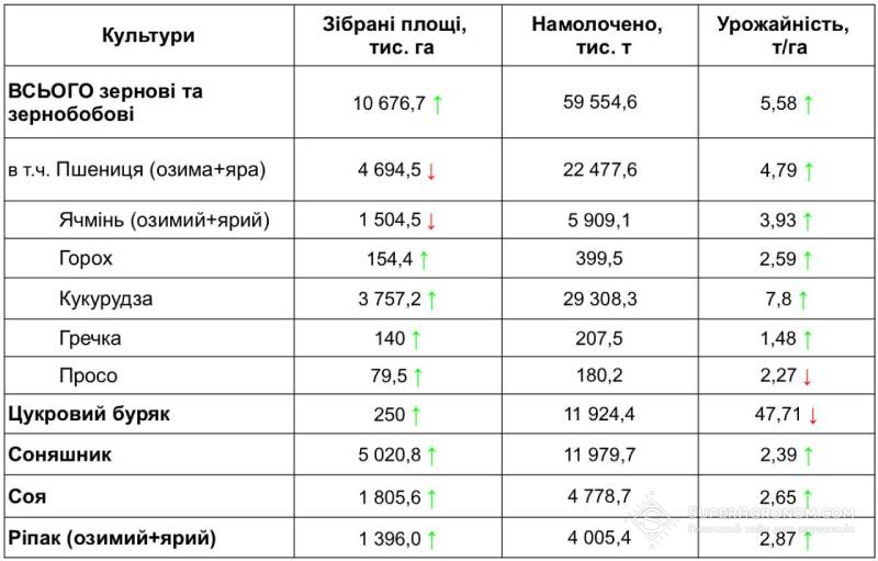 Результати сезону-2024 по основних культурах (дані Мінагро)
