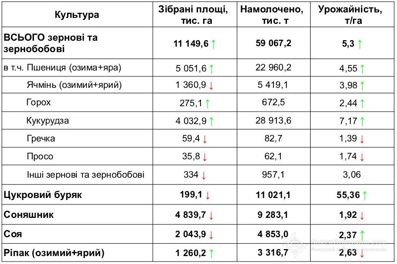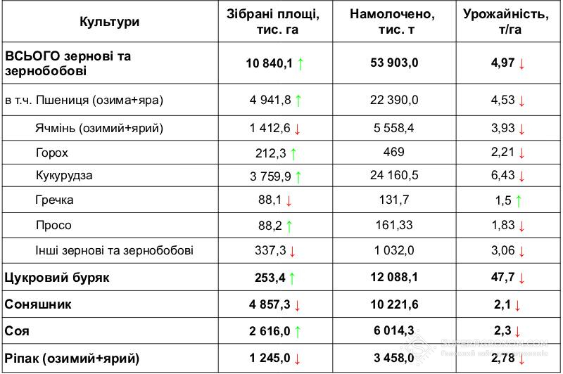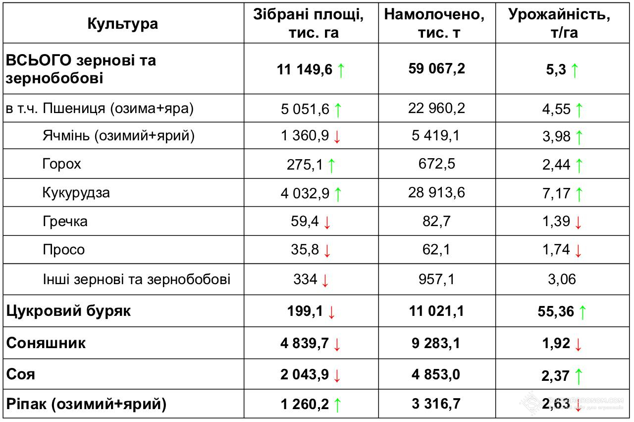 Результати сезону 2023 по основних культурах (дані Мінагро)