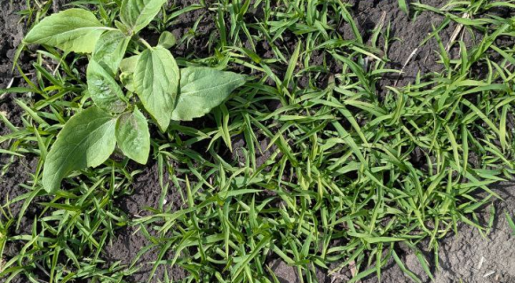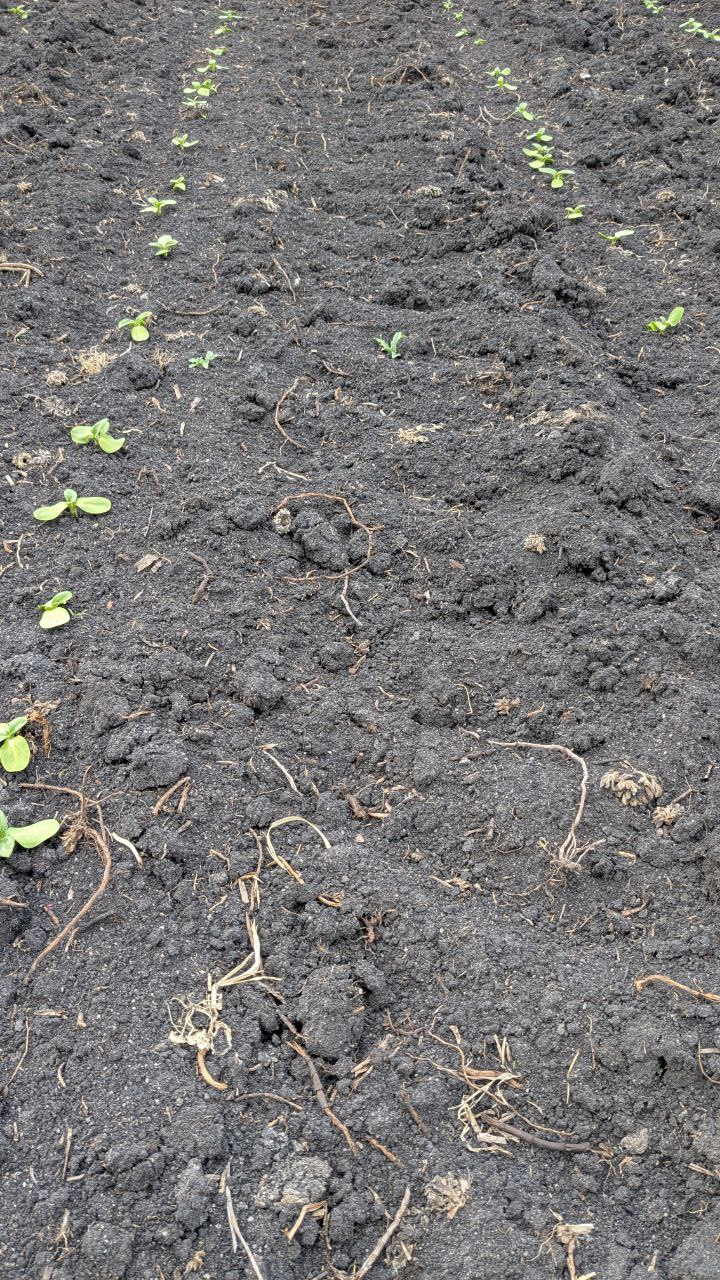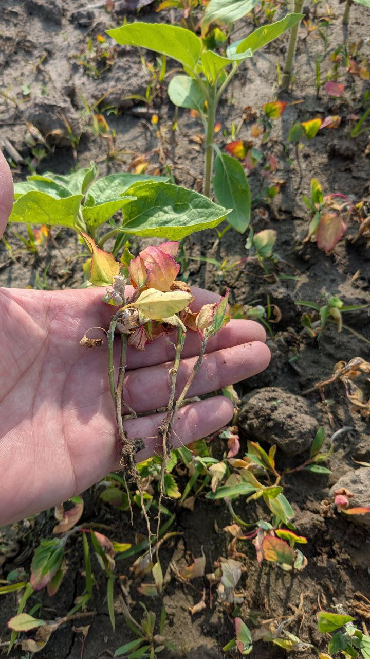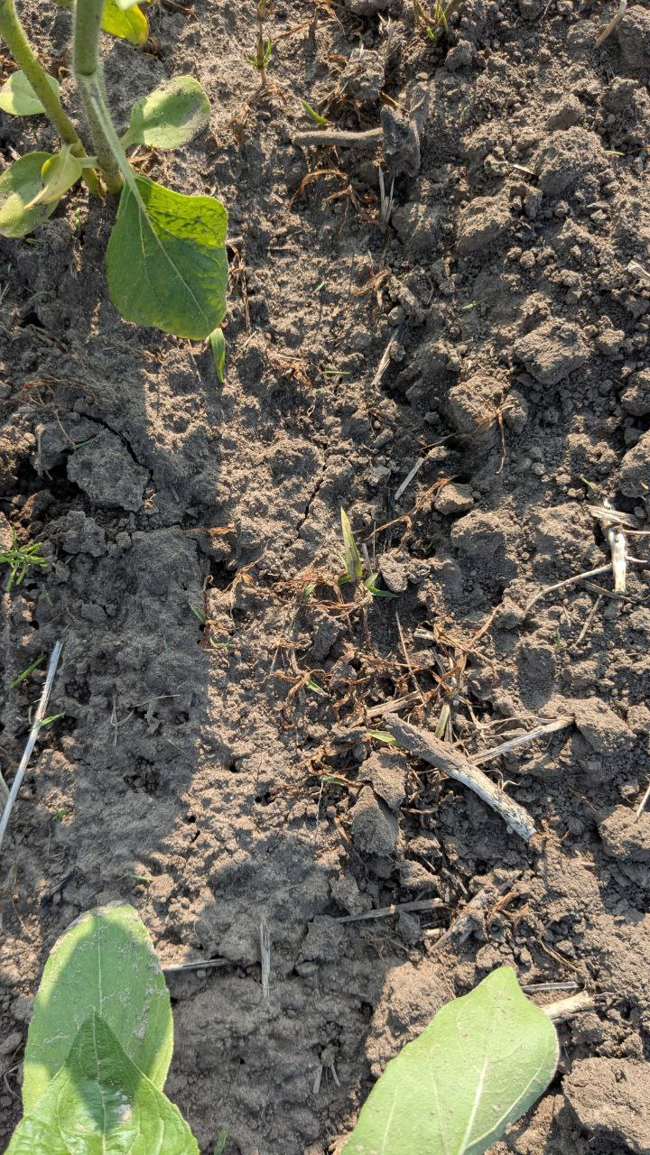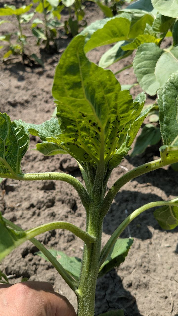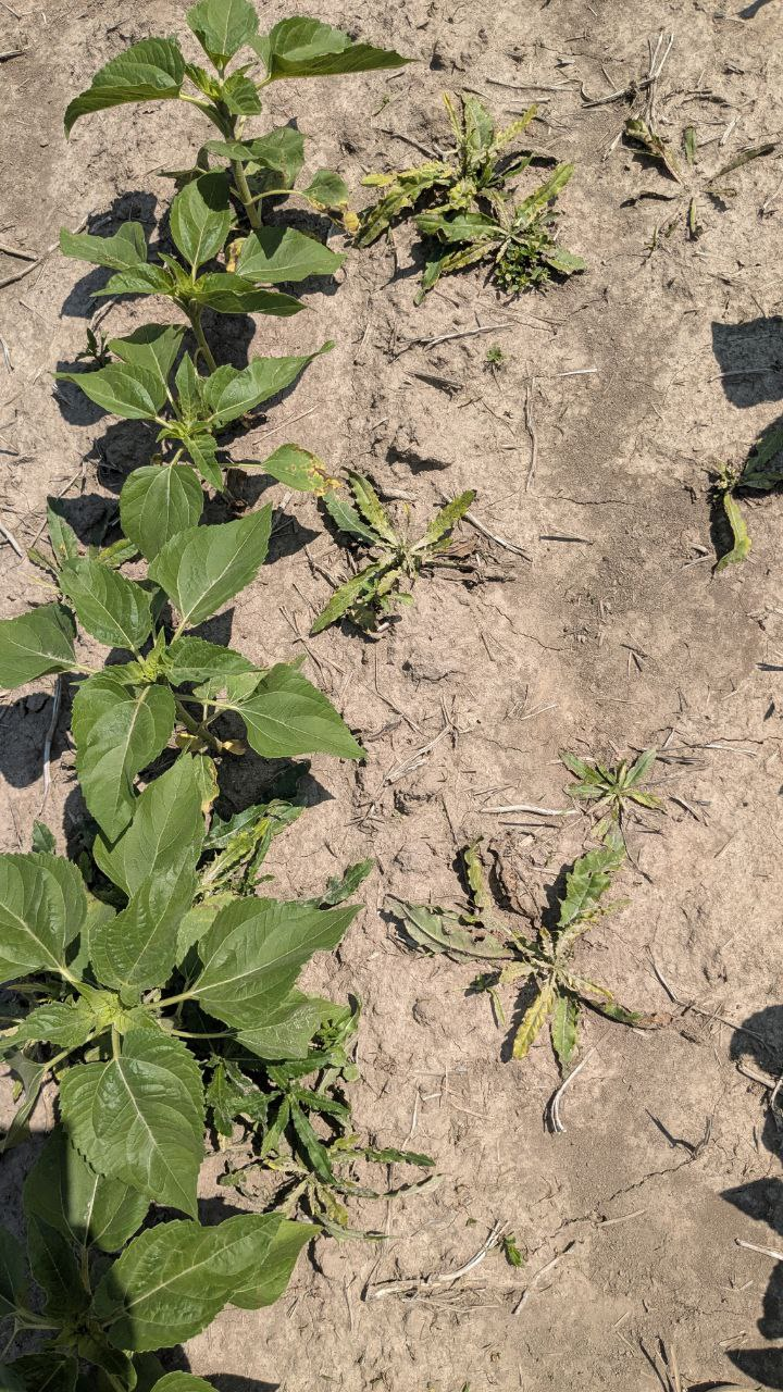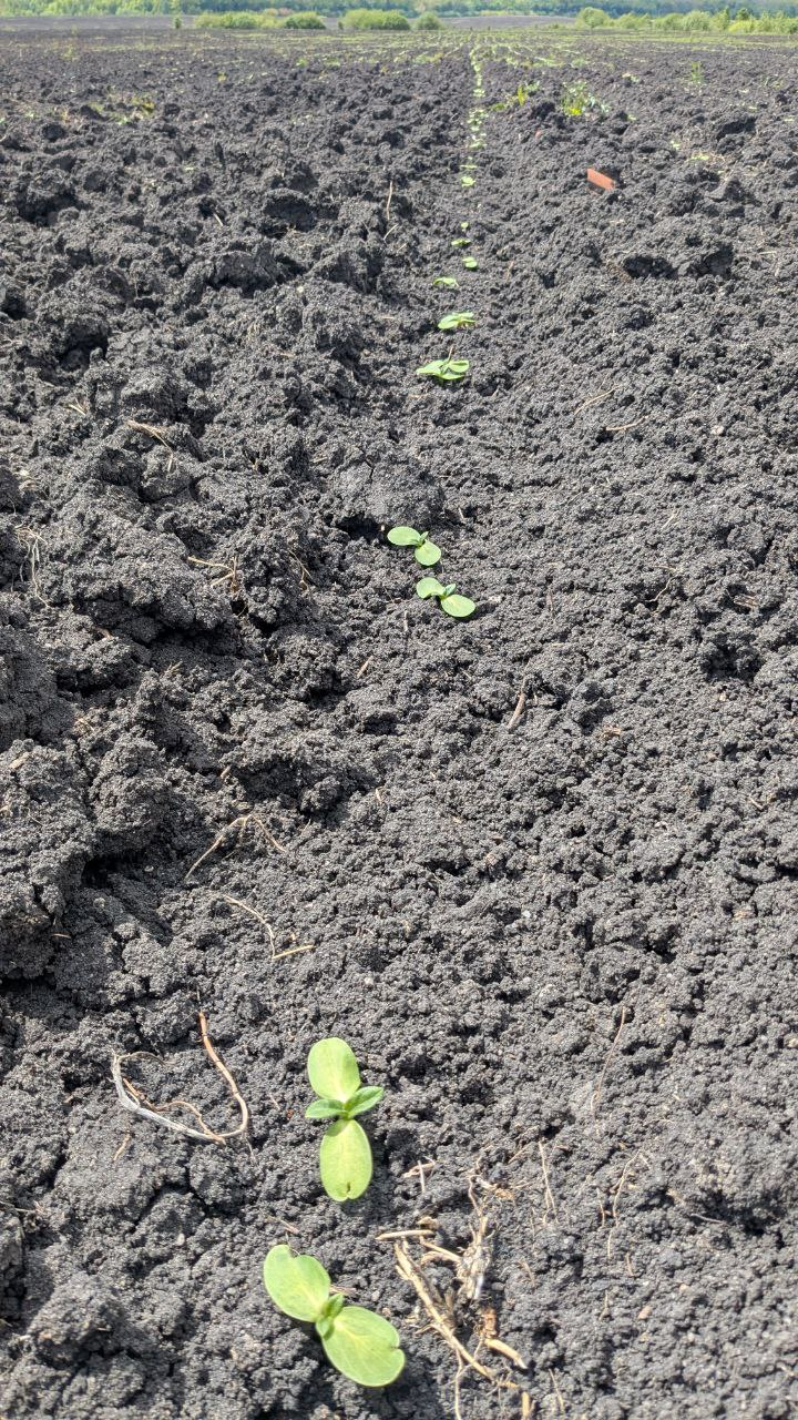 Сівбу соняшнику проводили 22.05.2025 р., відразу після посіву «накрили» площі ґрунтовим препаратом Авангард (метолахлор, 960 г/л), норма застосування була 2,5 л/га. Під час проведення моніторингу роботи ґрунтового препарату, на 22-й день після внесення, було зазначено його високу ефективну роботу.