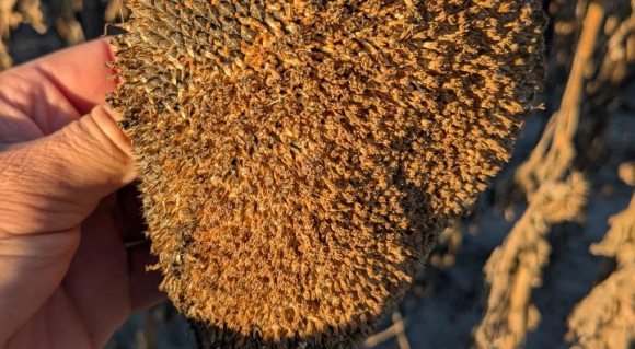 Перед збиранням урожаю провели підсушування рослин та часткове знищення бур’янів, використали препарат Мега Дикват (дикват дибромід, 374 г/л) в нормі 1,2 л/га. Взагалі господарство не планували проводити десикацію, але цього сезону було дуже нерівномірне достигання посівів, окрім цього під час достигання соняшнику погодні умови спровокували поширення хвороби кошика — склеротиніоз (біла гниль). Тому було вирішено прискорити дозрівання десикацією, тим же призупинили розповсюдження самої хвороби. В результаті зберегли максимальну урожайність та вчасно підготувати площі під озимі зернові.