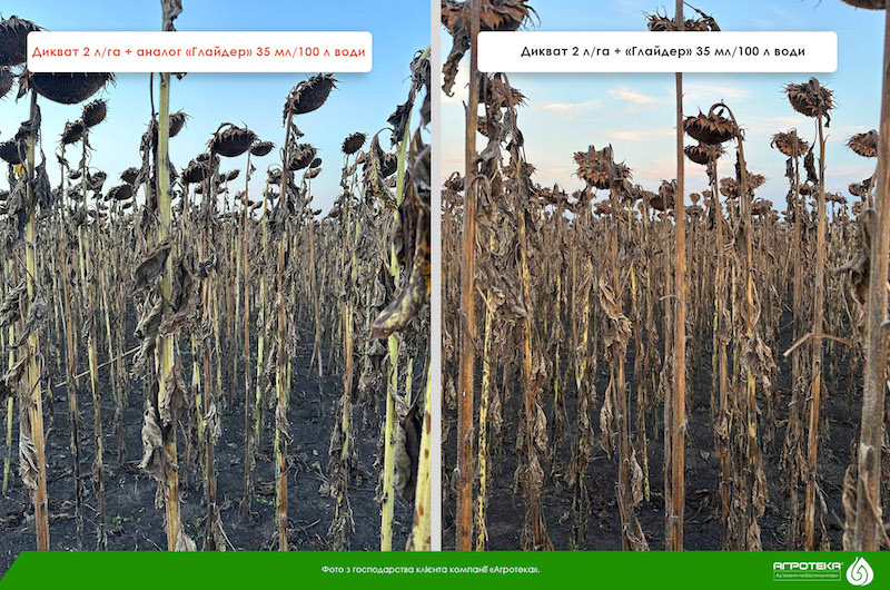 Цікавий факт: застосування адюванту дозволяє господарству заощадити або час, або гроші, залежно від пріоритетів господарства. Наприклад, стандартна норма внесення диквату під час десикації — 2 л/га. А з використанням Глайдера можна отримати той самий результат з меншою на 10% нормою внесення. Тому що це контактний продукт, і чим більша площа покриття ним листка, тим швидше буде досягнуто результату. З одного боку, внісши звичайну норму диквату, за допомогою ад’юванту пришвидшити дозрівання культури щонайменше на один день і таким чином оптимізувати польові роботи під час жнив. Якщо ж економія часу не така актуальна, з Глайдером можна заощадити кошти. Тобто знизити норму диквату. Процес дозрівання триватиме стандартні 5 днів, натомість отримаєте економію.