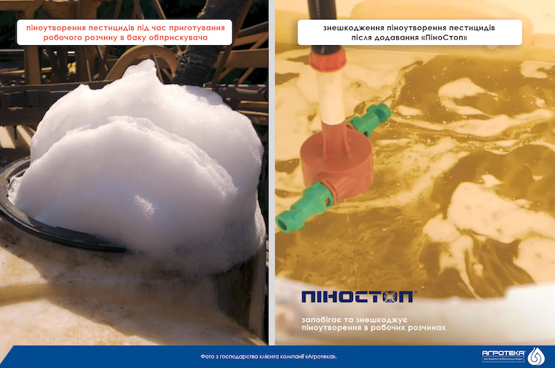 Піногасники (антипіни) — це спеціальні препарати, які додаються до робочого розчину ЗЗР для запобігання або усунення надмірного піноутворення. В «арсеналі» компанії «Агротека» є піногасник ПіноСтоп — це високоефективний ад'ювант органосиліконової групи для боротьби з надмірним піноутворенням при приготуванні робочого розчину в пестицидах, добривах та ін. Завдяки піногаснику ПіноСтоп можна уникнути проблем з піноутворенням пестицидів при приготуванні робочого розчину в баку обприскувача: