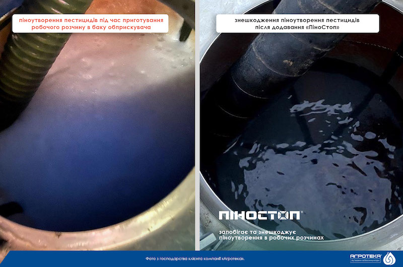 Цікавий факт: застосовувати ПіноСтоп можна як на початку приготування робочого розчину, додаючи в бак одразу після кондиціонеру Аквареді, так і тоді, коли вже розчин готується і утворилася піна. Але в другому випадку норма витрати ад'юванта буде значно вищою.