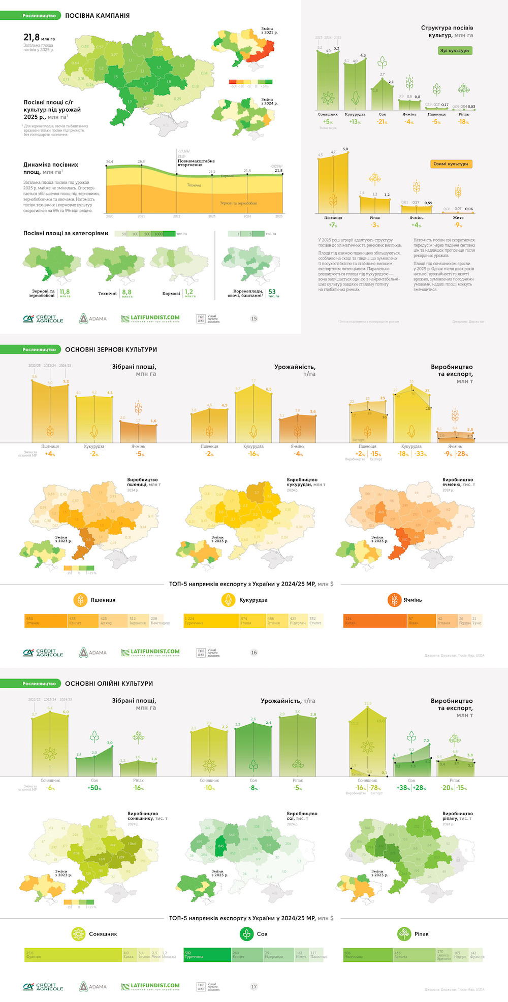 Джерело інформації інфографічний довідник «Агробізнес України» за 2024/25 МР. Довідник доступний для скачування онлайн за посиланням.