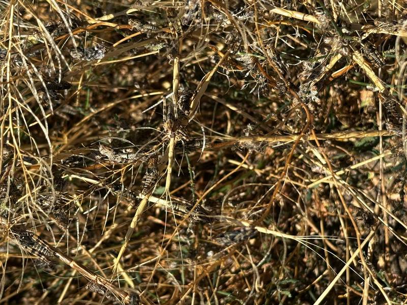 На півдні Одещини відбувається масова міграція сарани. Комахи переходять з одного поля на інше у пошуках поживи, не нехтують навіть майже сухою травою узбіч.