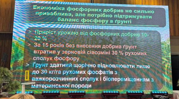 «Приріст урожаю від фосфорних добрив зазвичай становить 10–20%. За останні 15 років у зернових сівозмінах запаси фосфатів зменшилися приблизно на 30%. Ґрунт здатен щорічно забезпечувати лише близько 30 кг фосфору, тоді як ми виносимо 50–70 кг», — пояснив Григорій Господаренко.