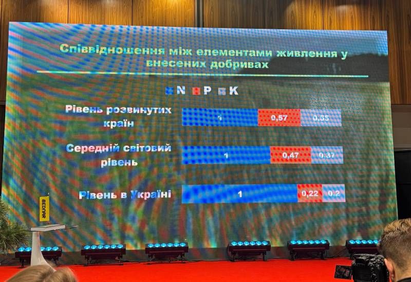 У багатьох країнах з розвиненим сільським господарством на одну одиницю азоту вносять у середньому 0,6 одиниці фосфору та 0,5 одиниці калію. В Україні ж переважають азотні добрива, тоді як фосфорних і калійних — дуже мало. Через це знижується ефективність азоту та загальна окупність внесених добрив.