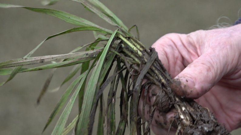 «Коефіцієнт кущення — два з половиною–три. Вторинна коренева система розвинена. Надземна частина листя у доброму живому стані», — каже він.