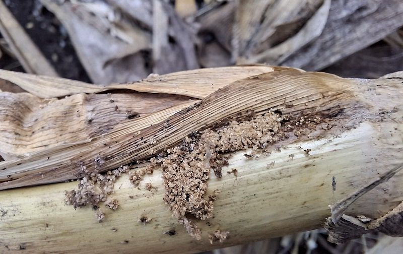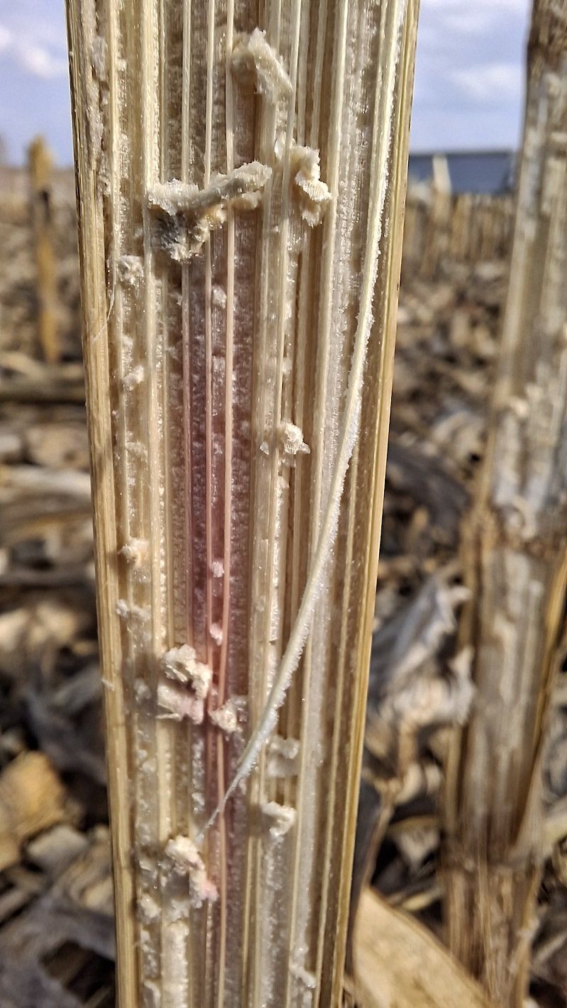 У стеблах також відмічено життєдіяльність кукурудзяного метелика, а саме пошкодження його личинкою. Негативного впливу у вигляді вилягання також не відмічено.