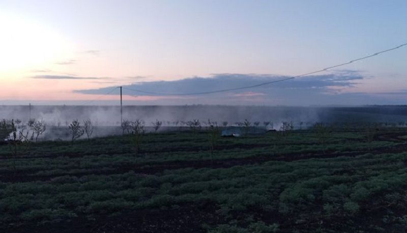 Фахівці підприємства «Світанок Старі Маяки» на Одещині провели термінові роботи з димлення саду 10 квітня через різке зниження температури повітря.