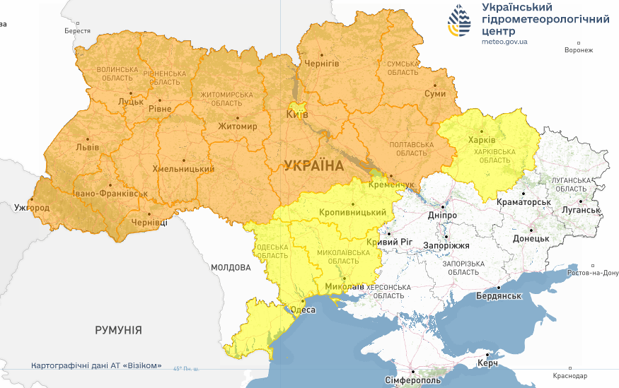 22 квітня в Україні, крім південного сходу, на поверхні ґрунту заморозки 0-3° (І рівень небезпечності, жовтий).